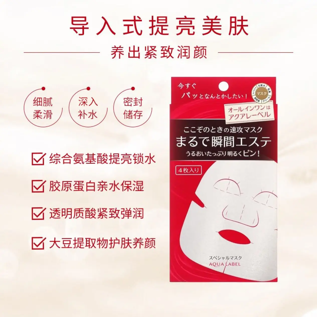 资生堂(Shiseido) 水之印六合一高保湿面膜20ml*4片装 补水提拉紧致 4片